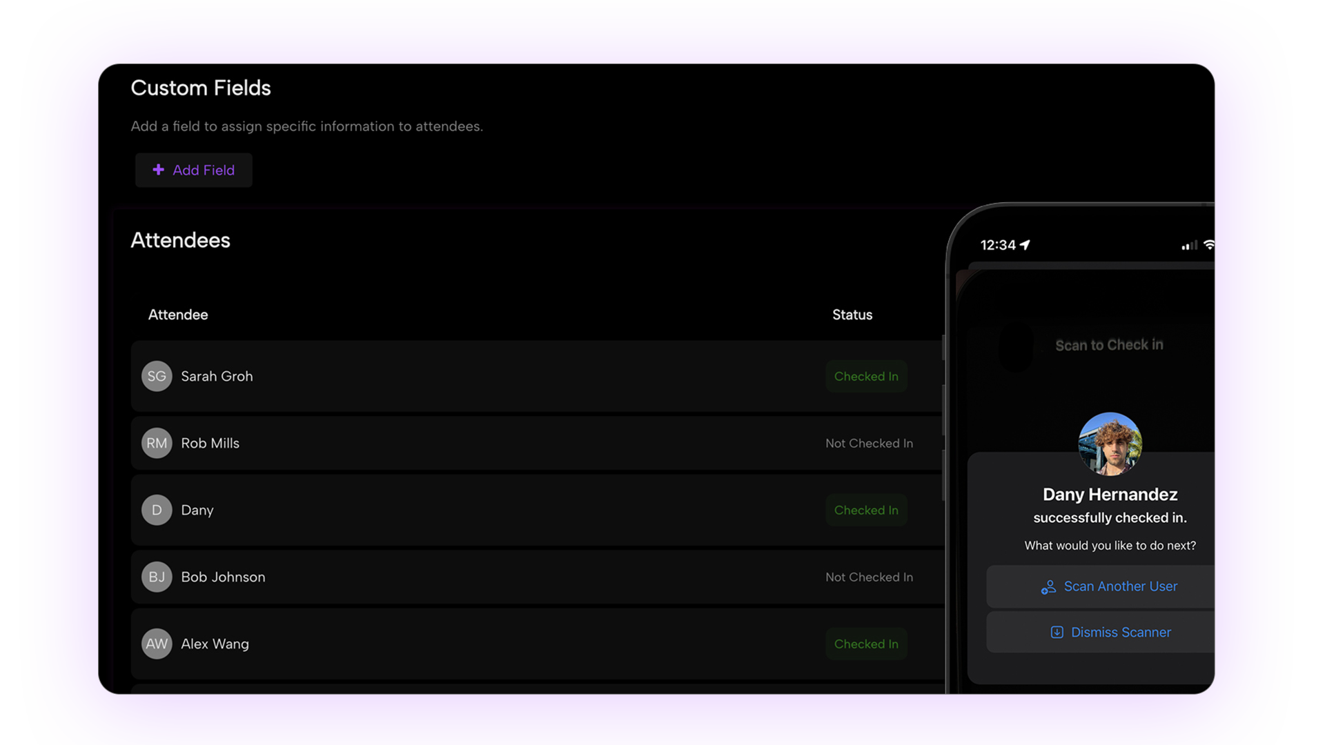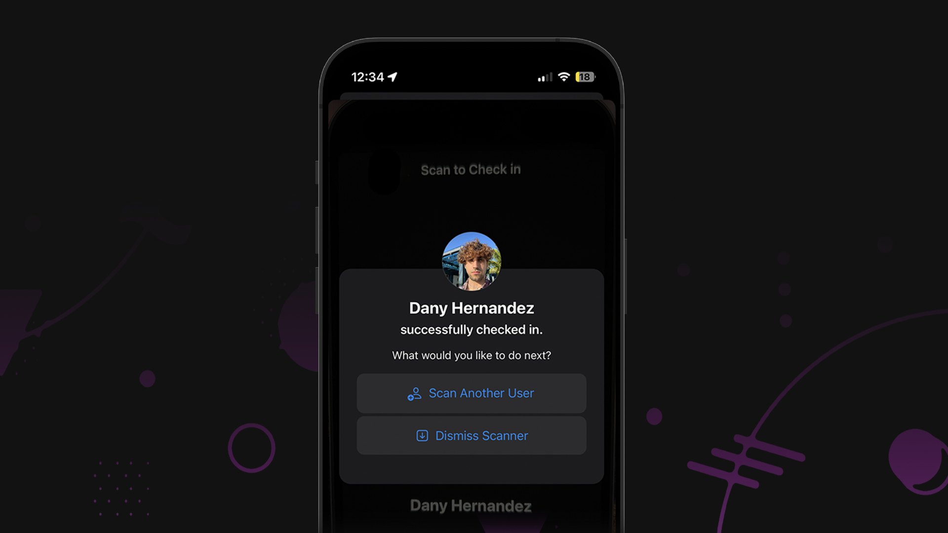 Check in attendees by scanning their QR code, or have attendees scan a code